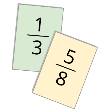 Consider arranging students in groups of 2 for the first game or two (so that students would need to compare only 2 fractions at a time), and arranging groups of 3 or 4 for subsequent games. Before students begin playing, ask them to keep track of and record pairs of fractions that they find challenging to compare.